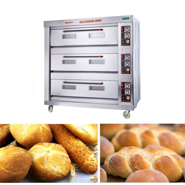 Three Decks Commercial Gas Bread Ovens , Economic Gas Power Commercial Bread Baking Oven Images |